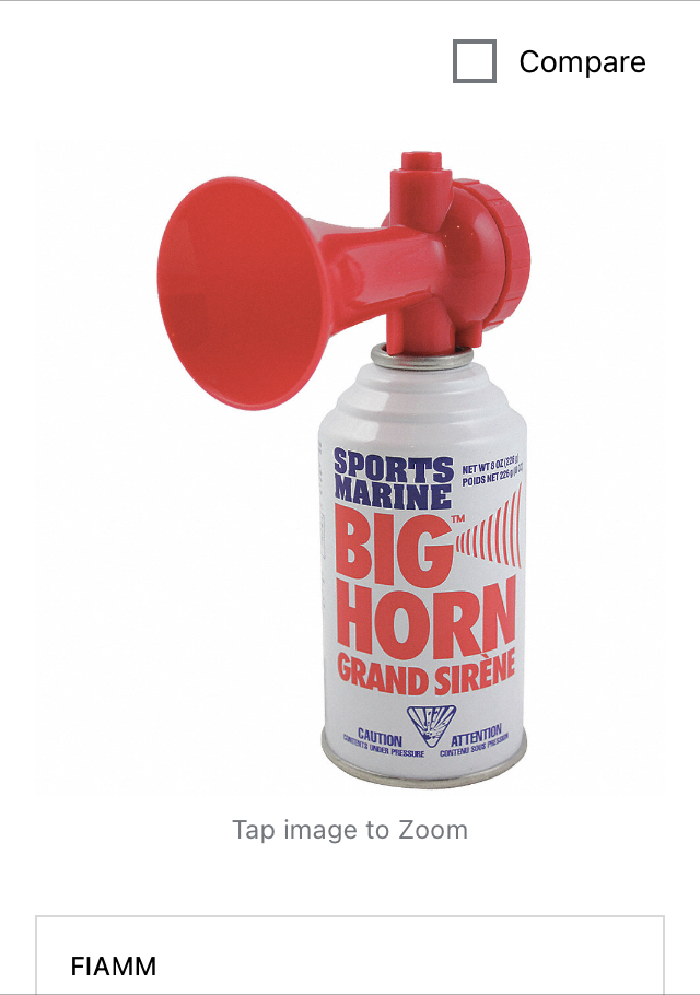 A few years ago while spending about a month at the coast for work, sharing a 5 bedroom house with co-workers, as part of a series of back and forth practical jokes and everyone generally being intentionally irritating for entertainment purposes because grown men sometimes act like middle school boys when left to their own devices, I bought one of those portable air horn in a can things like pictured. As the person in charge of the operation it seemed appropriate to blow the horn to signal the start and end of the day. It’s Coast Guard approved for vessels up to 60’. I’m not sure what that means other than it’s stupid loud. Even if you’re the one blowing the horn and everyone knows it’s about to blow there’s a involuntary convulsion/jump from everyone nearby when it goes off.