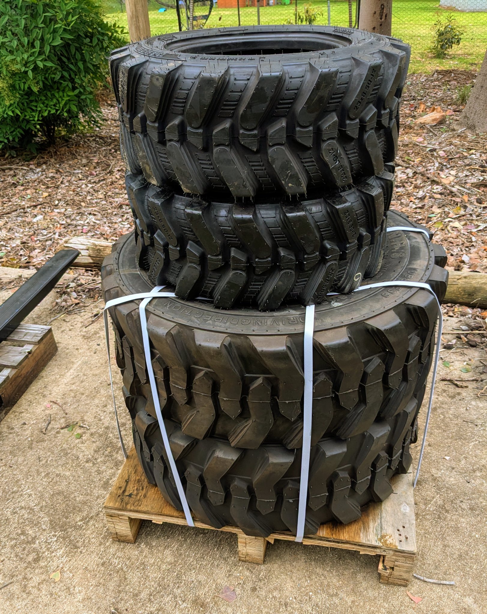 I wanted something with more grip than turf tyres, but not as aggressive as ag tyres so I settled on skidsteer tyres. Also wanted a good load rating for the loader.