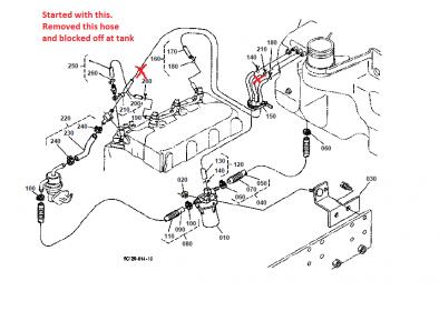 I still have a problem with the fuel return line from the IP that goes directly to the tank. I have put a NEW line on it and also blew it out to make sure it's not restricted at the tank. When I hook up that hose, the fuel level drops in the bowl and the tractor dies. If I keep that hose blocked off she runs great.