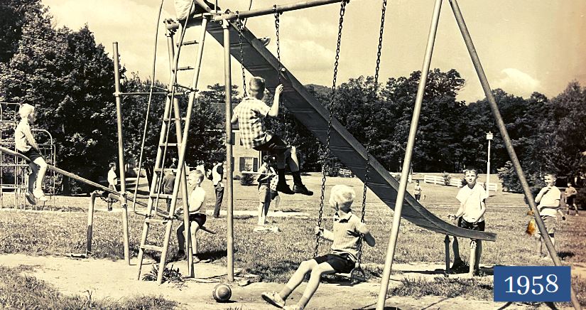 There may be some actual pictures somewhere in boxes we move as generations die off, but here are some pics that resemble the equipment in the "town" playground when I was a kid. The volunteer fire company maintained a small park for the kids in that end of town. There was a baseball field and a few pieces of equipment.