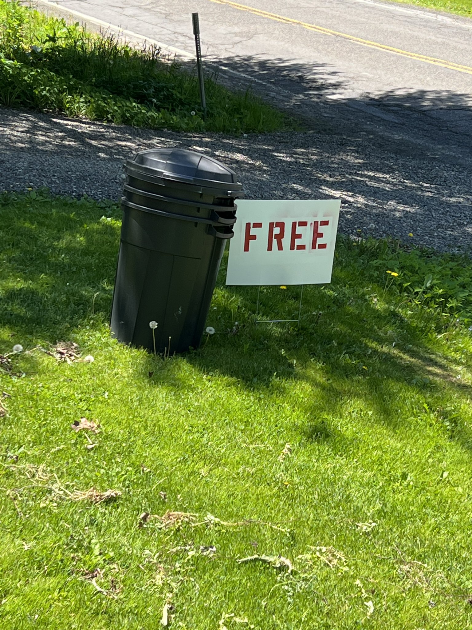 You might be a redneck if….. not only trying to get rid of used garbage cans, but my FREE is a repurposed political sign…..