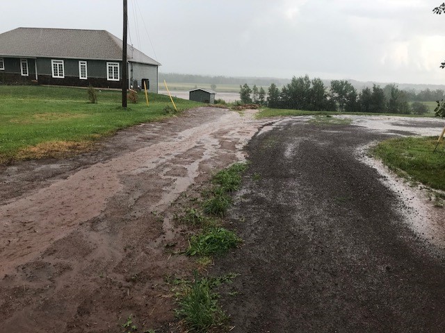 The driveway when I moved in. Water ran down it and pooled on it. The field/lawn on each side was higher then the driveway.