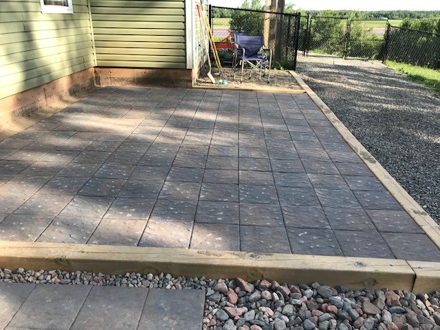 30 tons of gravel drug from the front yard around the house, under the deck, through the fence and spread to prepare for patio.