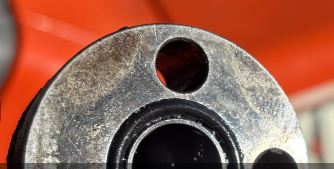@Smokey160 - please clean that part up a bit to remove the oil since it reflects the light oddly in pictures. I would use Berryman B12 or a non-chlorinated brake parts cleaner in a spray can to blast it clean. You should remove the o-ring first or it will probably get lost. Then take another picture of the part after it dries without the o-ring and another with the o-ring. I guess if you have some third hand available use a sharp pencil point or something similar to point to the suspected crack to help us see what you are looking at.