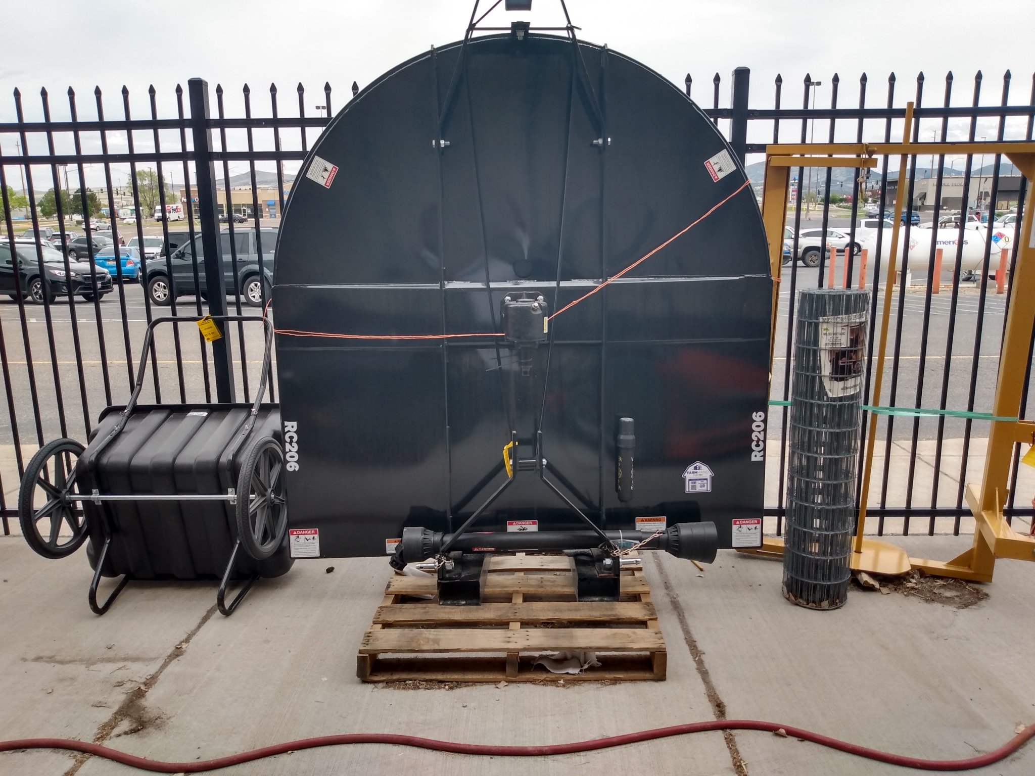 That is a very cool winter storage solution but was thinking the same thing about how one would stand up and lay down the cutter. Maybe a strap is the way to go if the loader has enough clearance. My RCR1884 supposedly weighs 850lb without the driveline and with a front rubber guard. I have metal chain guards front and rear so all in around 900lb. That's a lot of weight to mess with but I'm still interested in the concept.Might be difficult to stand it up and lay it down. And that makes for a pretty big kite. A little wind and there she goes. Unless you tie it up to something.