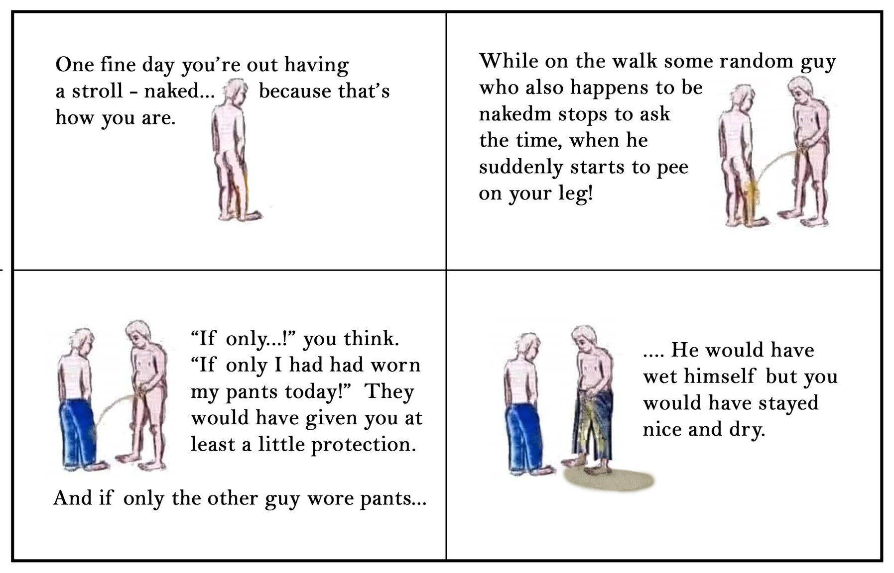 I kind of subscribe to the following philosophy, except with Covid, what is leaving your body is not leaving from your wiener, but rather from your nose/mouth.