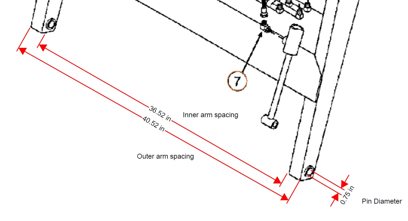 Anyone have a LA271 loader that could get a couple dimensions for me? Need to know the space between the outermost edge of the arms, the distance between the inner and outer side of each arm, and the distance between the inside of the arms.
