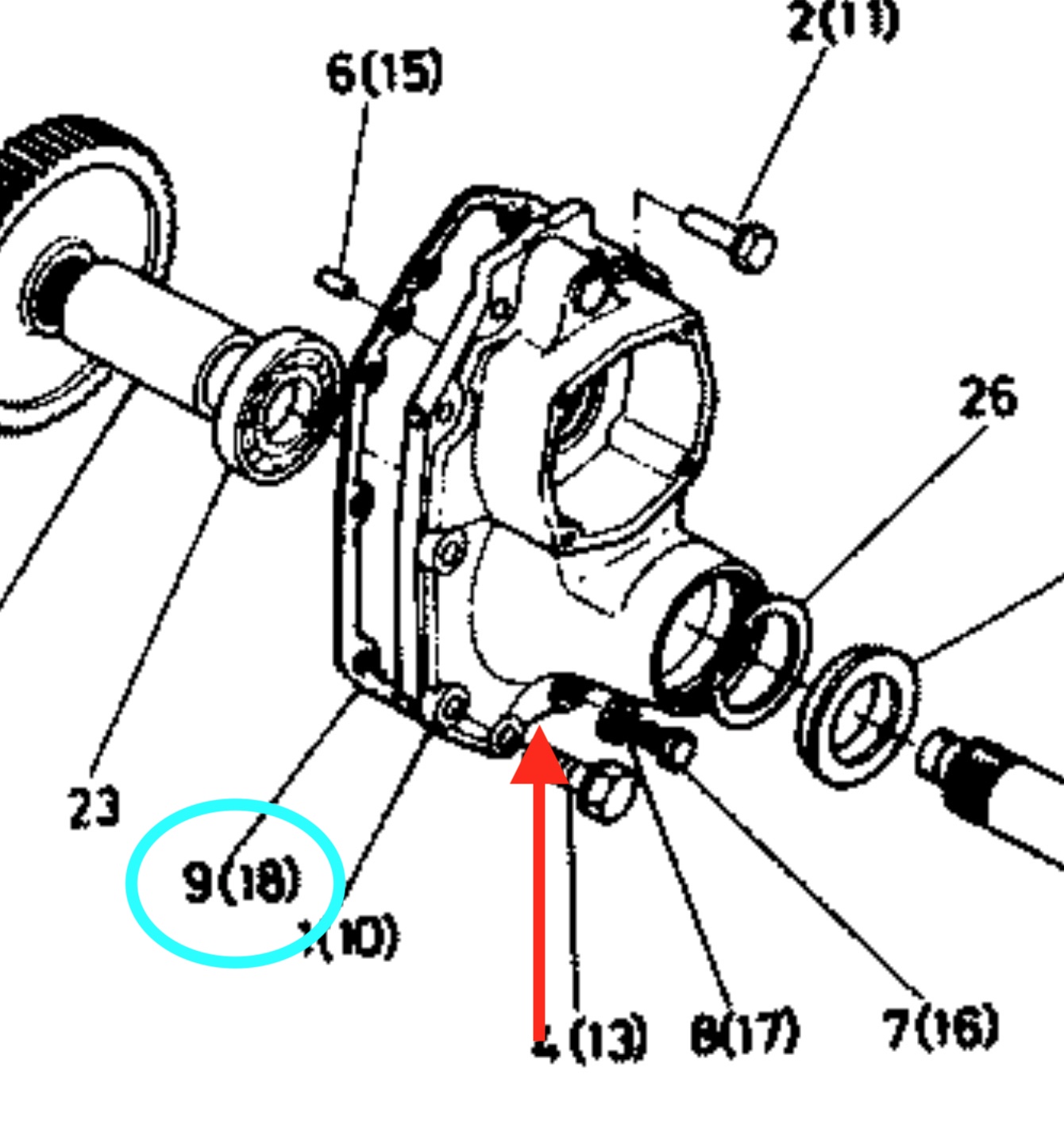 It appears that a small piece of this gasket (lt blue oval) has dropped out in the area of the red arrow.