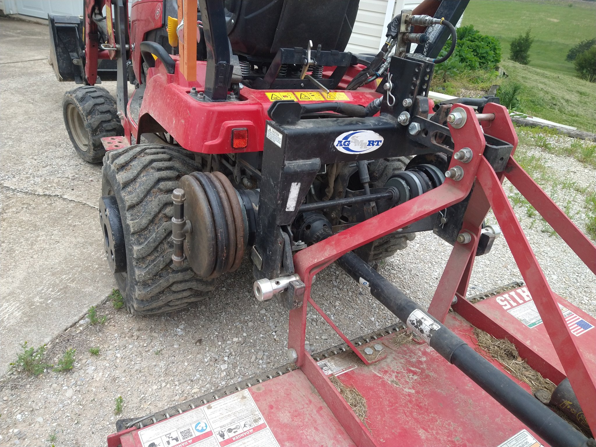 I'm not convinced that a tractor would tip over backwards with a brush hog on back of it going up a hill, possiblity of lifting the front tires? Maybe ... Unless dragging something like a back blade that snagged a big root ...