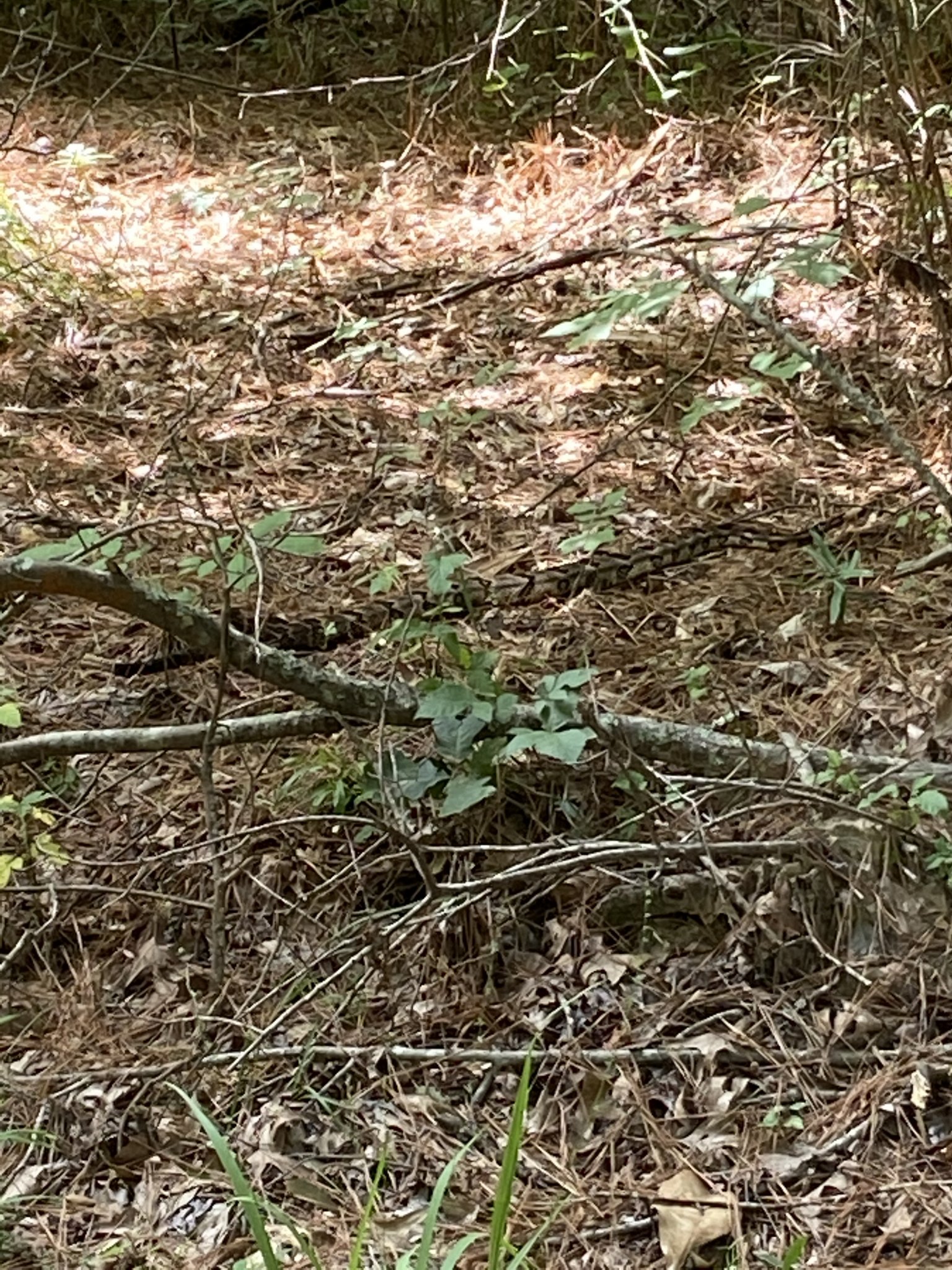 This is your best friend in AZ. A King Snake. Non poisonous, very easy to spot, and a Rattler's worst enemy (hence the name "King"). This was shot a couple weeks back right outside my barn. I had a baby one of these, maybe a foot long, in my house garage years ago and I was afraid I'd injure him or drive over him. I musta dragged him out of the garage four or five times. Finally, he went away. Snake grabbers are very handy out here...