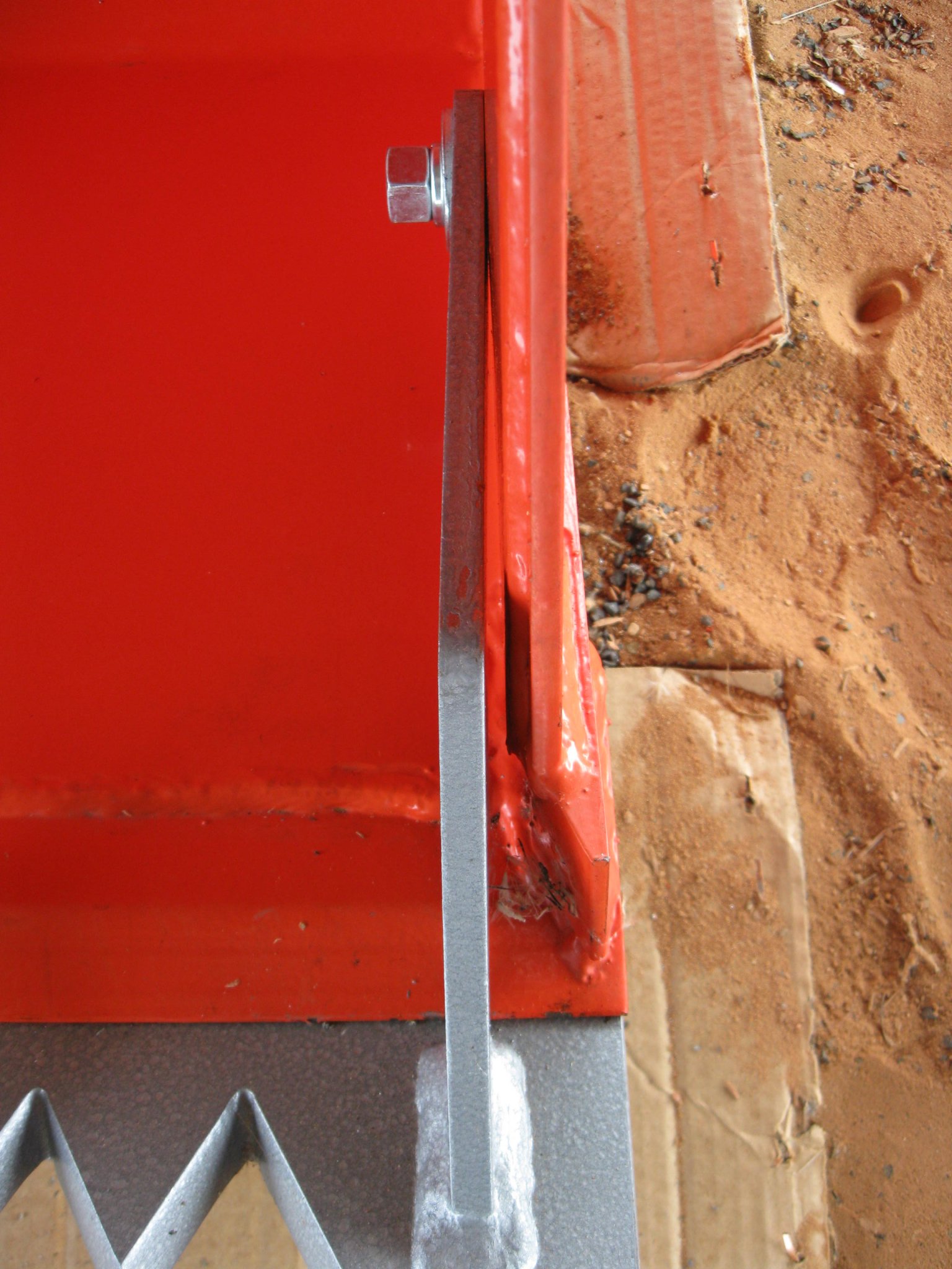 4. The bars that mount to the side walls had a little bit of clearance (i.e. they were closer together than the inside dimension of my bucket). You can fill the space with washer(s), but if you do that, you may have to go buy longer bolts. If you just crank down on the bolts, the arms will flex enough to touch the inside wall of the bucket without adding washer(s), so I just went that route. This puts a little side torque on the welds at the tooth bar, and that means there will be a combination of stresses at the weld when you are working but it's probably a fairly long term fatigue problem perhaps not worth worrying about.