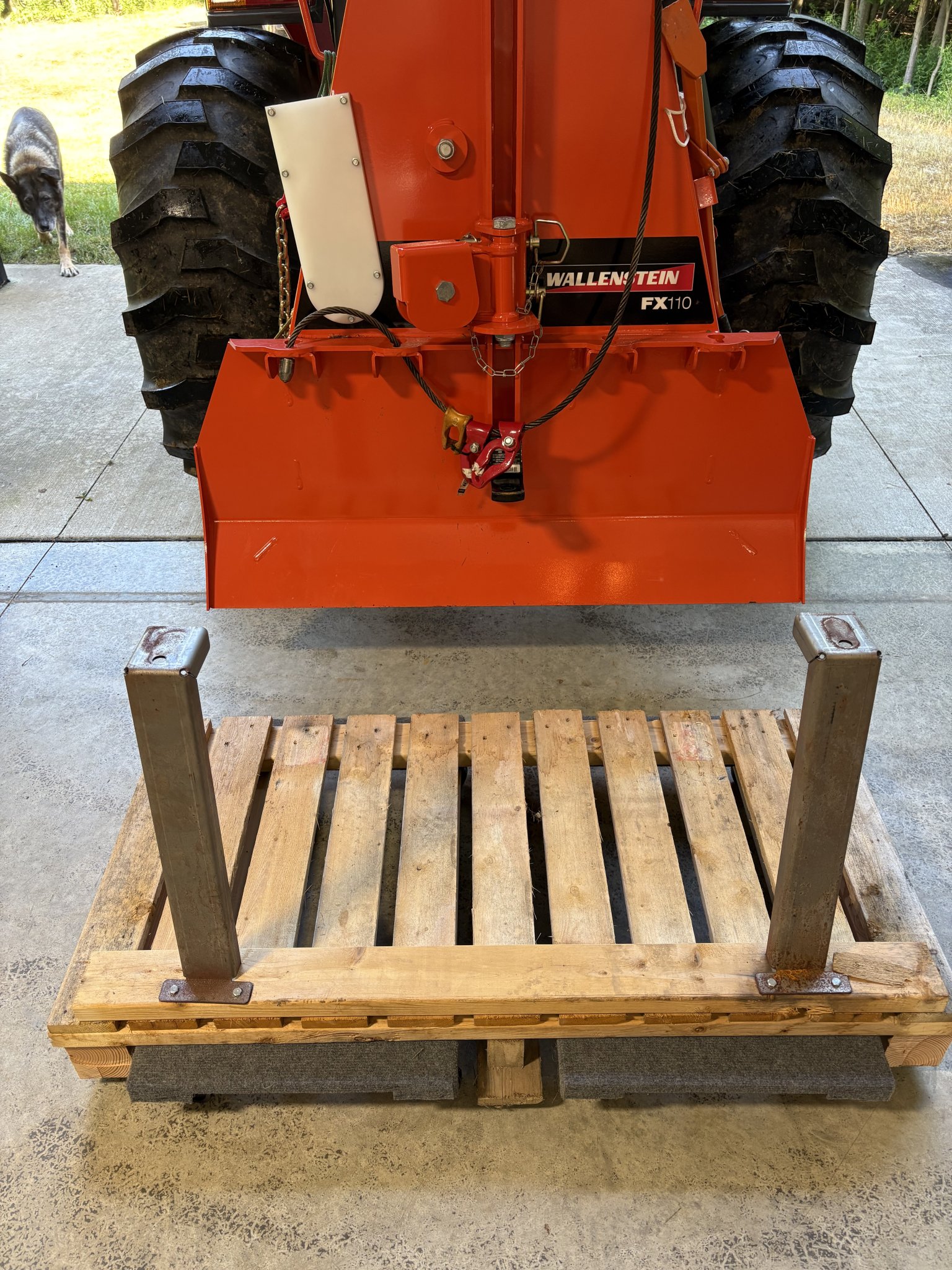 I kept the pallet and stabilizers from shipping and modified the pallet slightly and then added some dolly’s which makes moving on the shop floor smooth and it t also makes hook up easier as you can roll it into the 3 pt arms. (See pics below)