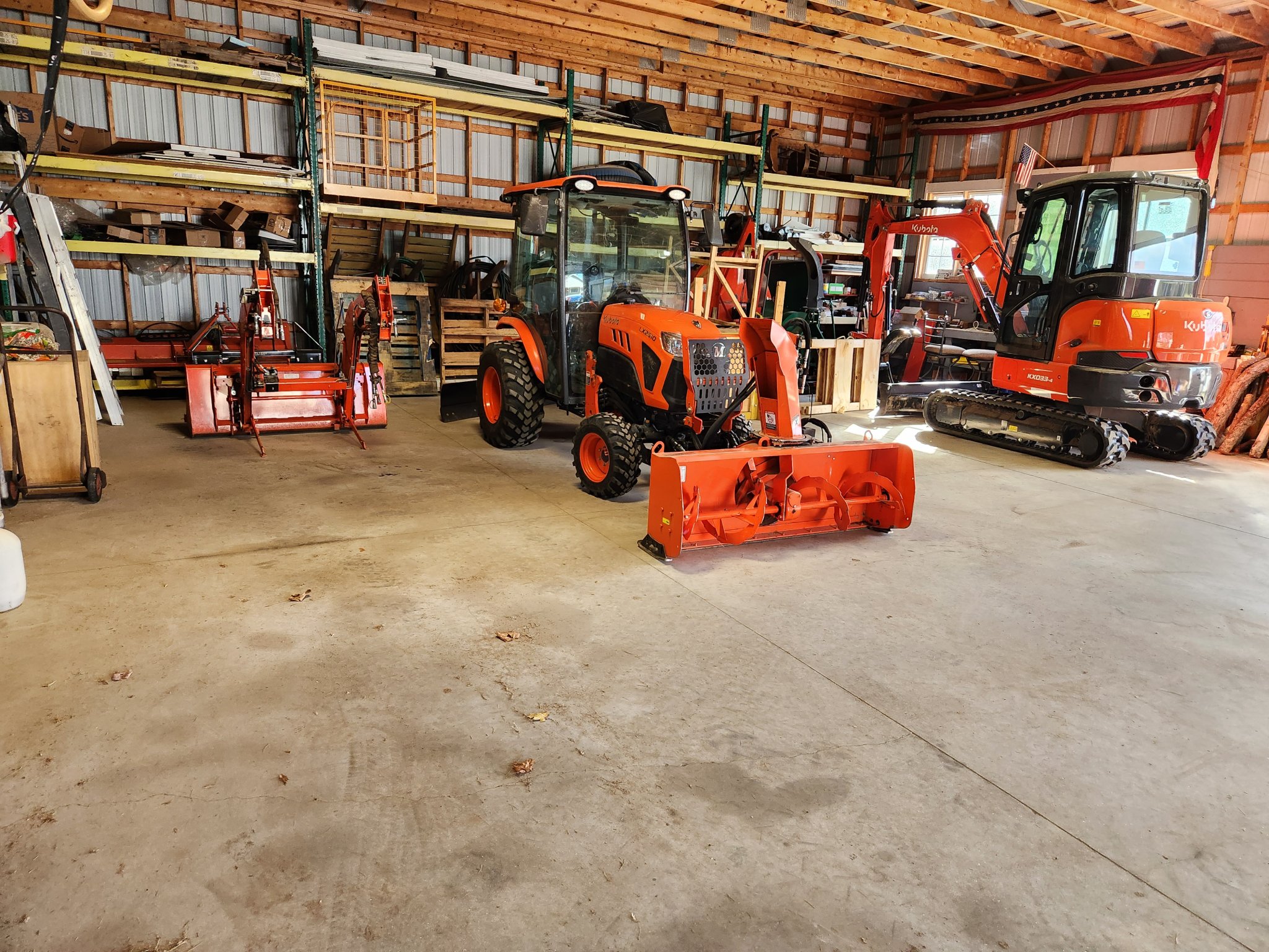 L6060, FEL, forks, front snowblower. KX033 mini ex. Dump truck, Husqvarna saws.