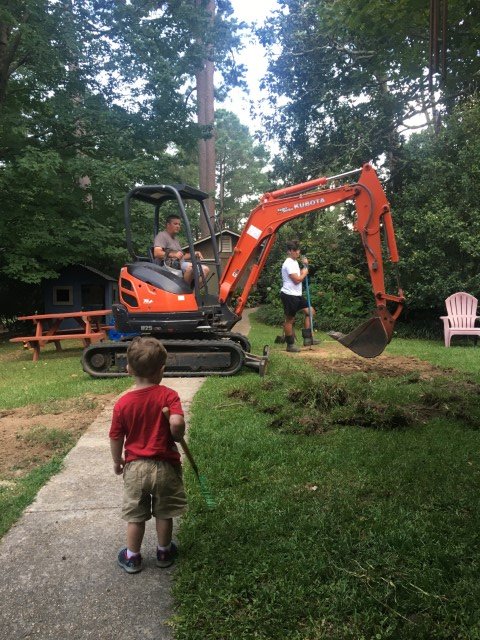 Digging out an old stump from the back yard. Actually just playing with a new toy er....excavator. ;)