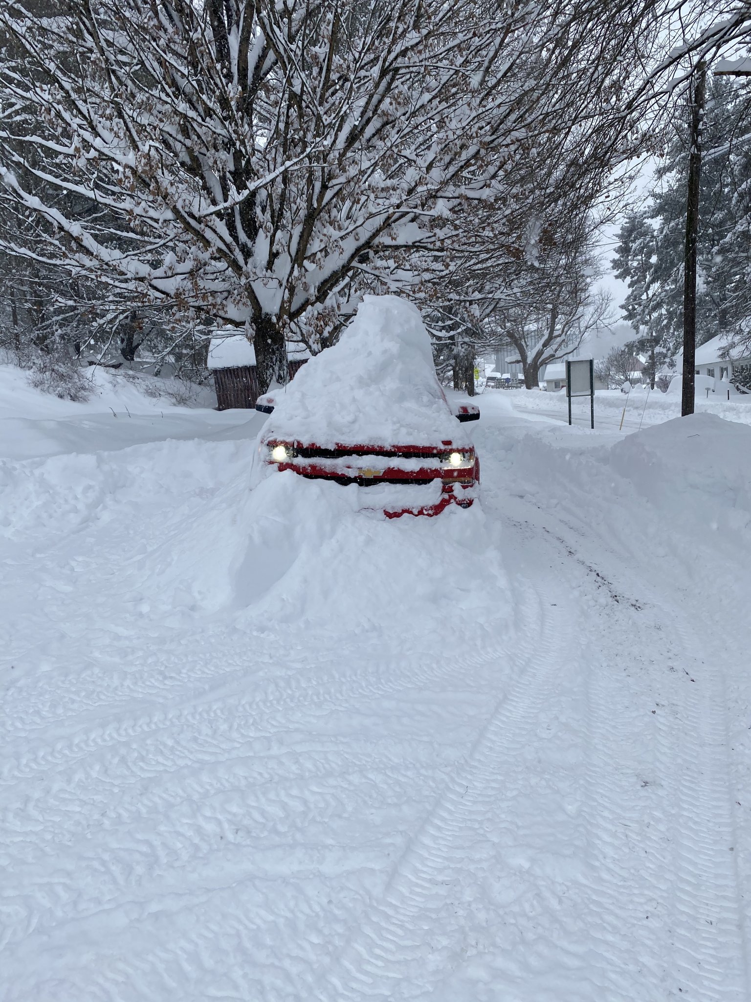 While plowing out my folks today, I had a tight situation where I was icebound under a large spruce tree and my only way out was one shot at a 5 foot high, 10 foot thick snowbank.
