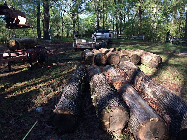 Well done. Hard to do anything in the mud, but yep, the sawdust will absorb a lot of water. Good looking hardwood. White Oak?Yes stormwise OK but as some of you, WET. 4WD twice yesterday moving and setting the sawmill up. Thankfully sawdust makes good "pavement" around the sawmill while working.