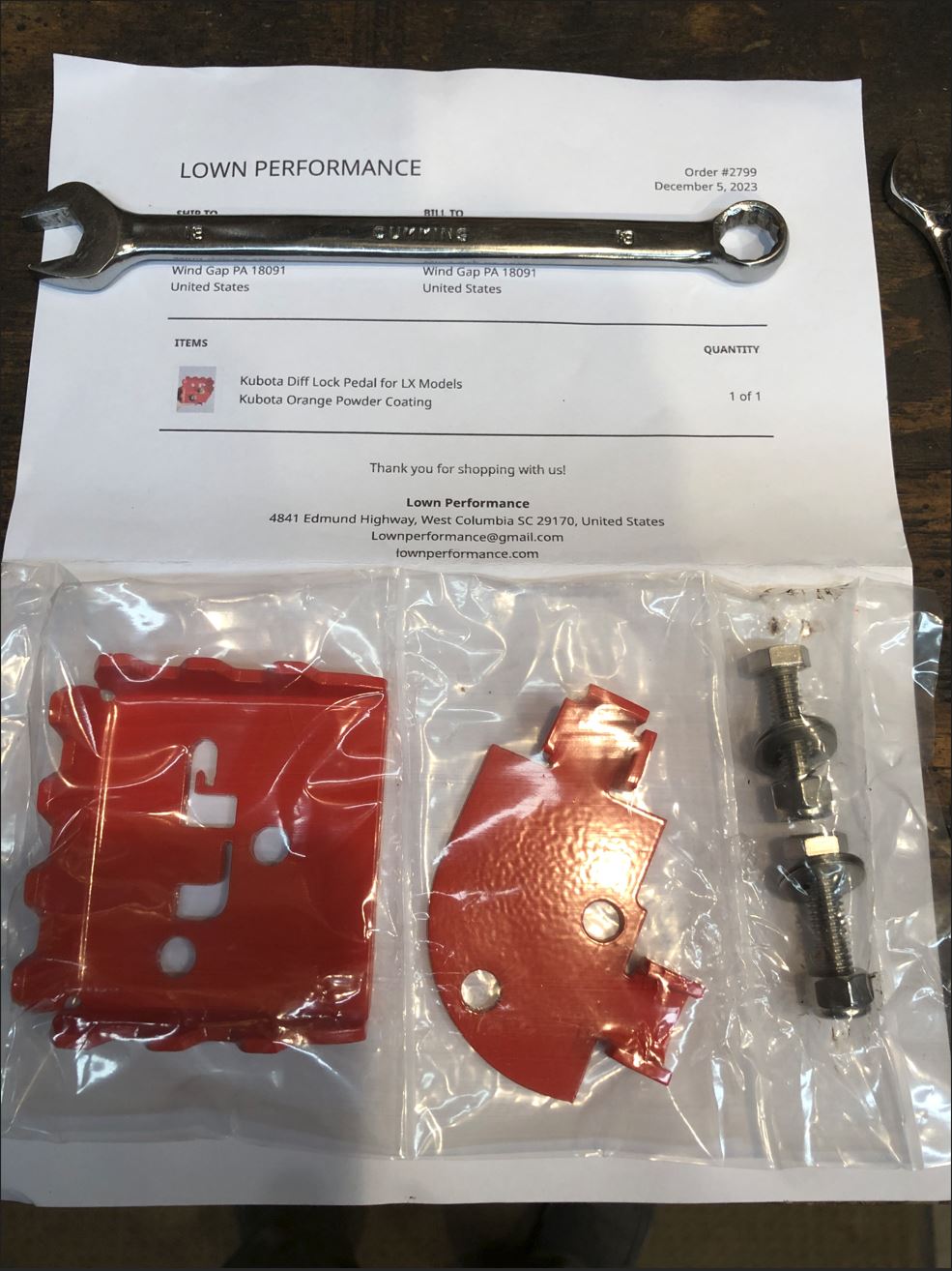 diff lock pedal from Lown Performance arrived today. I cross referenced the diff lock pedal from an LX01 series to that of the B2650. They are the very same Kubota P/N (for ROPS versions only). So, I placed an order with Lown Performance.