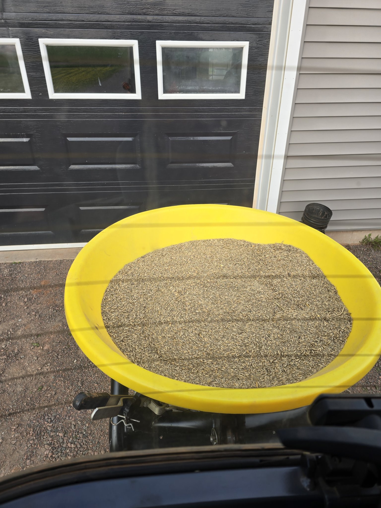 Grass seed and some oats. Seeded 3 acres tonight. A bit windy but supposed to be rain tonight and tomorrow so I gave it a shot.