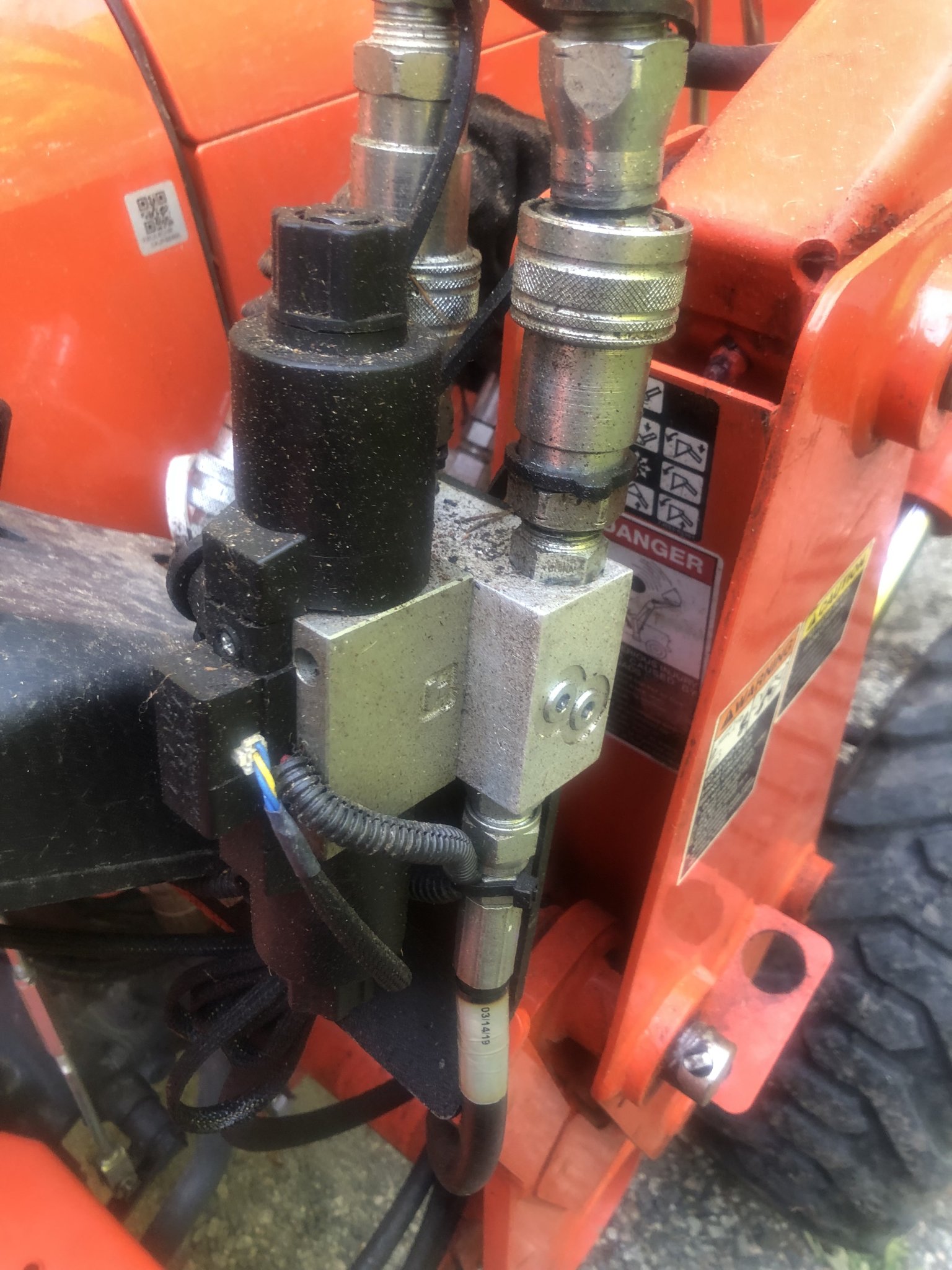 Then had one of those moments where I felt really stupid but glad for it at the same time. When I hooked up the grapple it would open maybe an inch and then it was like either there was a mechanical stop or a hydraulic dead head. I’ve had this happen before when a quick connect “looks” hooked up but isn’t quite. Disconnected and reconnected. No love. Messed with it for about 30 minutes swapping quick connects around and verifying no mechanical obstruction (definitely a hydraulic issue). Pretty much cleared potential issues on the front of the loader. Have had the grapple off and on numerous times since the loader was last off, so didn’t suspect problems on the valve end but when I started looking at the valve end of the circuit I see this.