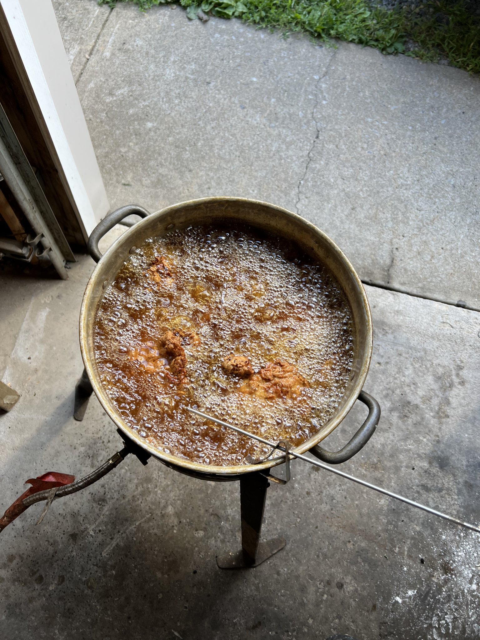 Fresh caught Catfish filet', sauteed' squash & Videlia onions, and fries.
