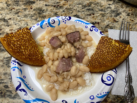 Great Northern Beans & Ham over Rice with Yellow Cornbread. MMmmm
