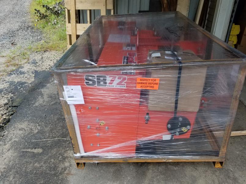 Monday my new Woodmaxx SB72 snow blower arrived. The steel frame is wider then my pallet forks. The trucker used the lift gate and pallet jack and finally got it off onto the ground. It was shipped on a wood pallet underneath when it showed up. I had to turn the pallet the opposite direction to get a bite and move it. Looks well made with thick steel plate just like my chipper. And half the cost of a Kubota blower.