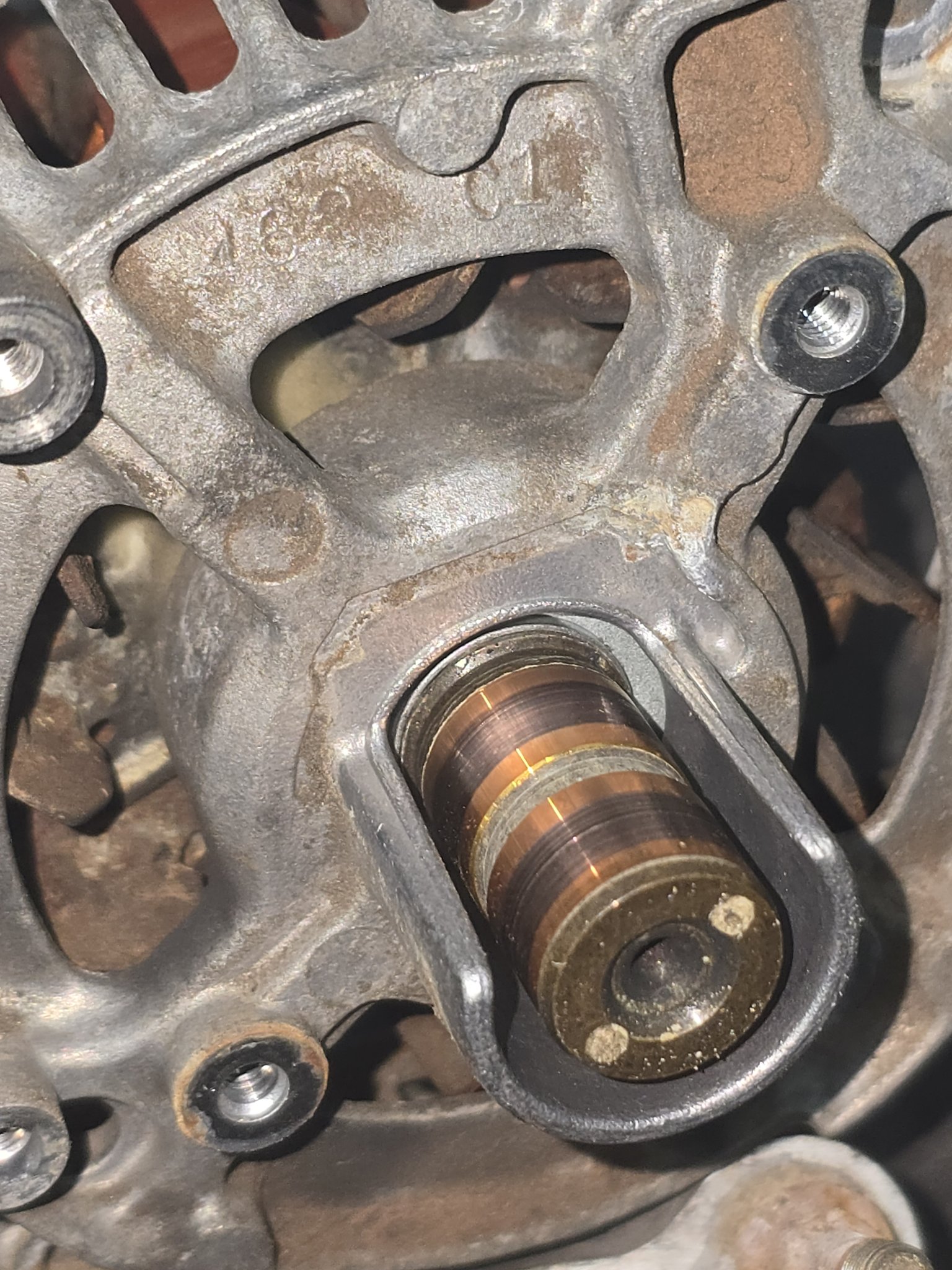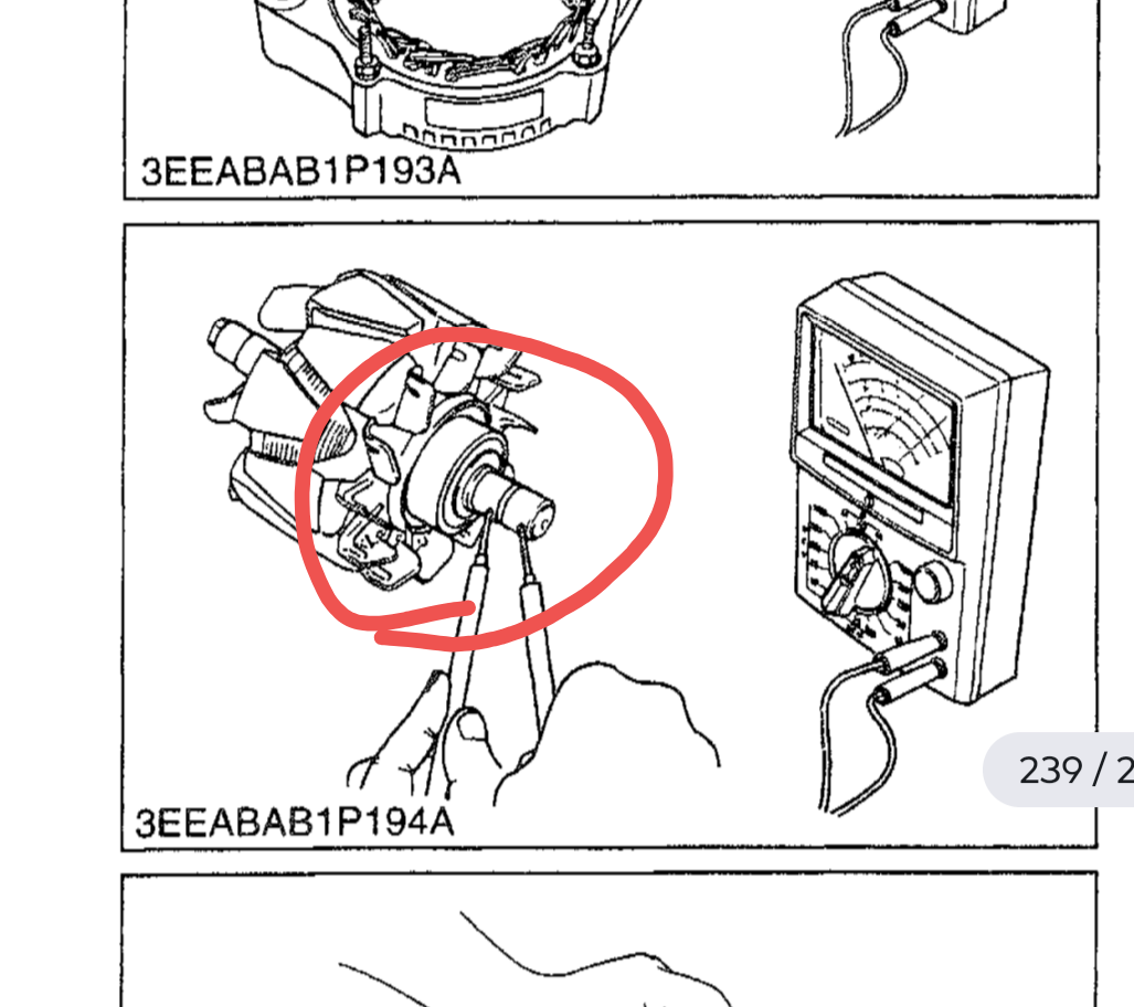 I downloaded that WSM out of curiosity. It still wasn't clear to me how to disassemble that bearing. It doesn't appear the bearing id can slip over the slip rings. Is the shaft hollow or slotted to get the leads past the bearing?