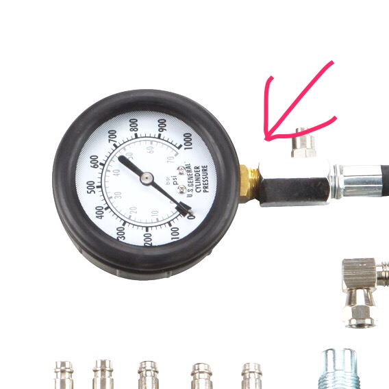 You should be able to use the fitting that came in the compression tester. Where the gauge threads into the fitting on the hose it should be 1/4" NPT. There may be a shrader valve that needs to be removed. View attachment 45843