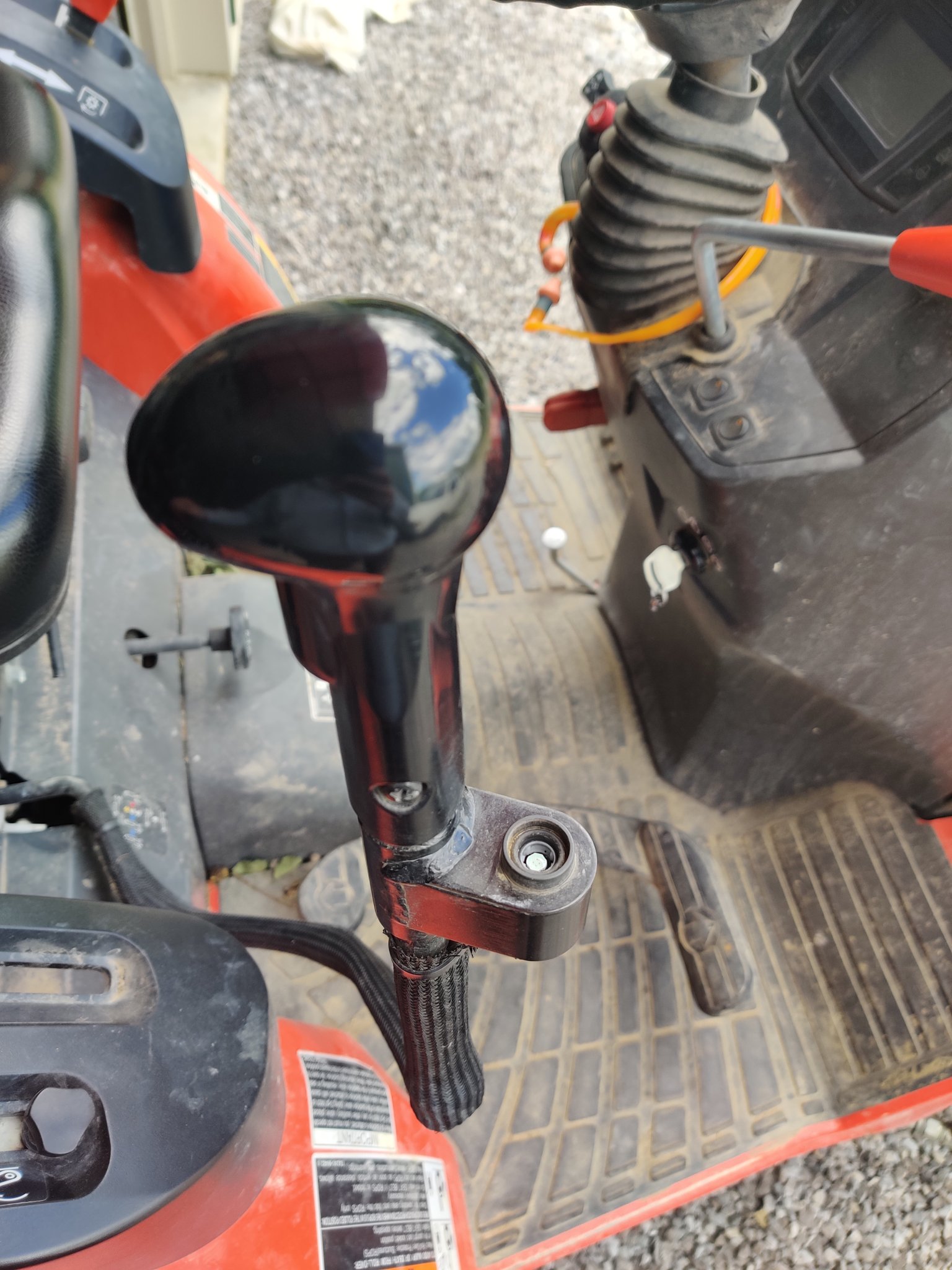You have to grab the knob with one hand, and pull up while rocking it side to side. I just had mine off on my BX23S to install the replacement loader valve knob. The plastic is retained by 2 short bolts on the BX23S, one in the middle at the top, and one on the right side about 3" down from the top. Both screws require that you remove the rear wheel and tire to access them. At the bottom of the plastic panel, are 2 tabs that fit into the steel fender, and you lift the plastic from the top towards the front of the tractor to disengage these tabs. Also makes it easier if you remove the rubber boot from the shaft once you have the knobs off.