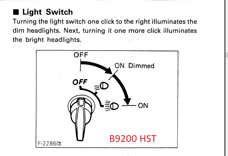 I wonder if the correct headlight switch is installed in the B6000 as the Operators' manual only shows a two position switch.
