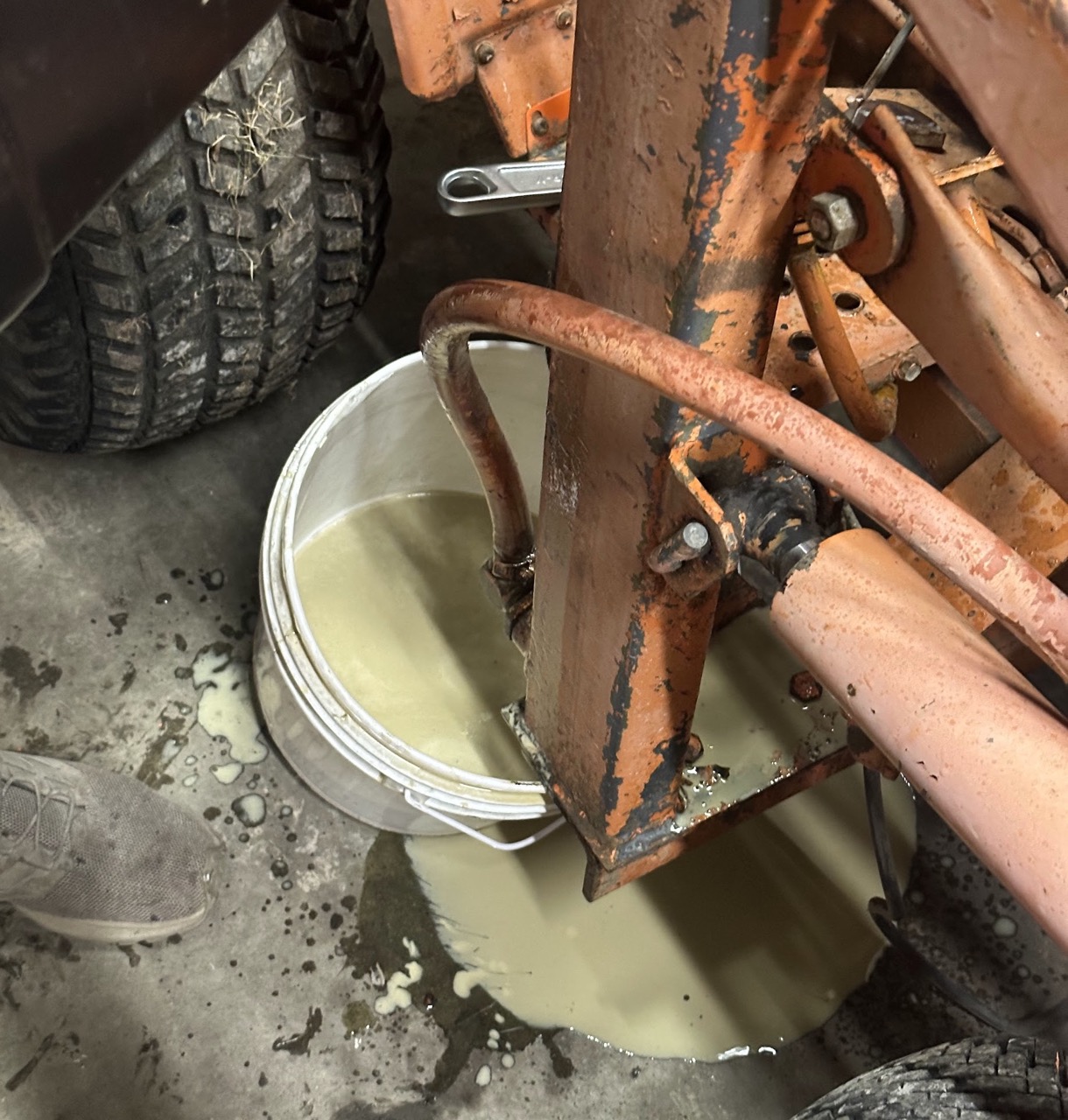 (pic of milky hydraulic oil flush from the first day we had the tractor)