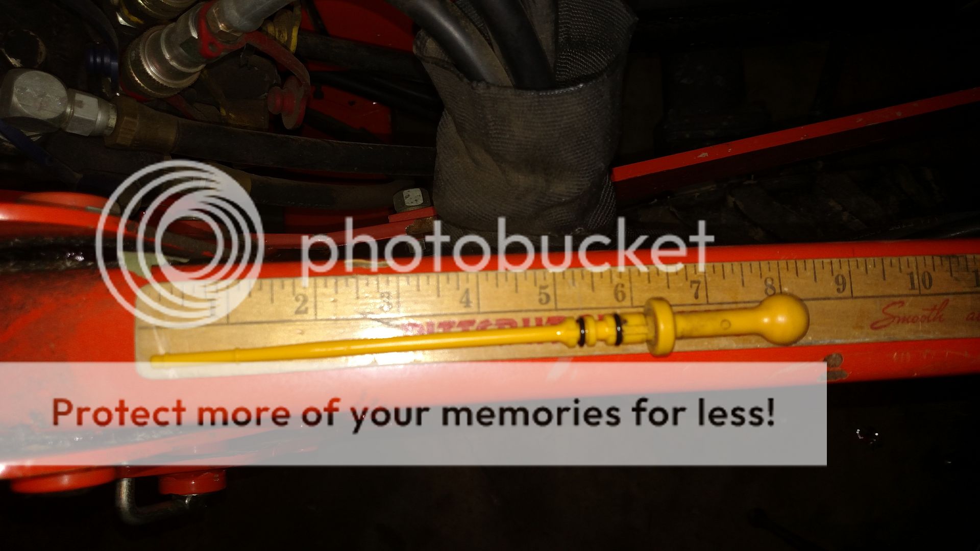 MAybe a dumb question, the dipstick to the hydraulics (located in front of teh seat near the floor) disappeared. Can anyone give me the length measuredfrom where it seats at th top of the dip stick tube to the end of the stick? Notice any automotive stick with the right size rubber "stopper" top will work if the length is correct. Any help?