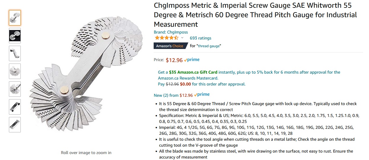 If your tap and die set does not already have a thread pitch gauge, $13 buys a comprehensive one on amazon.