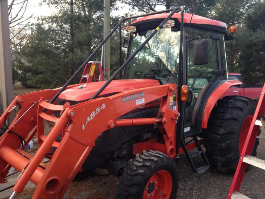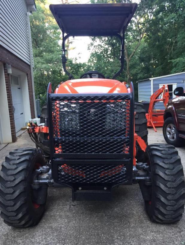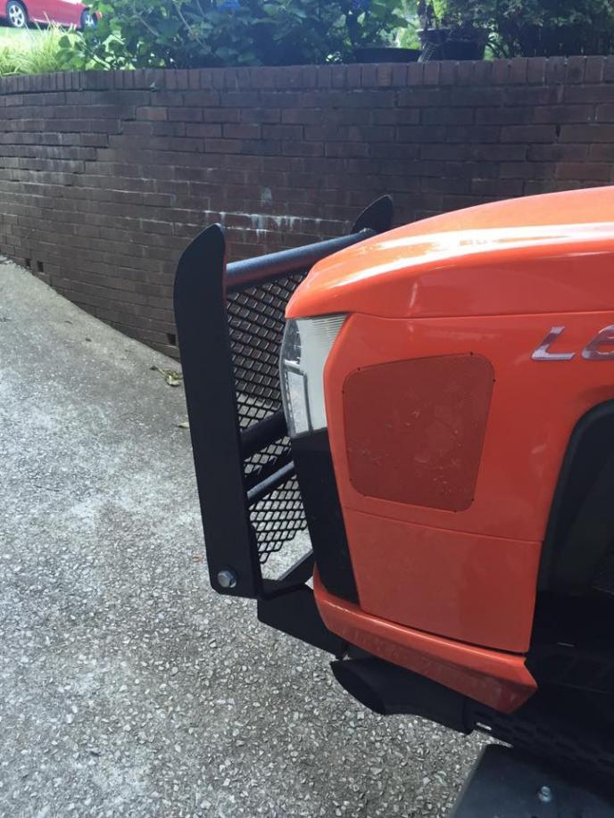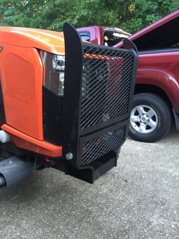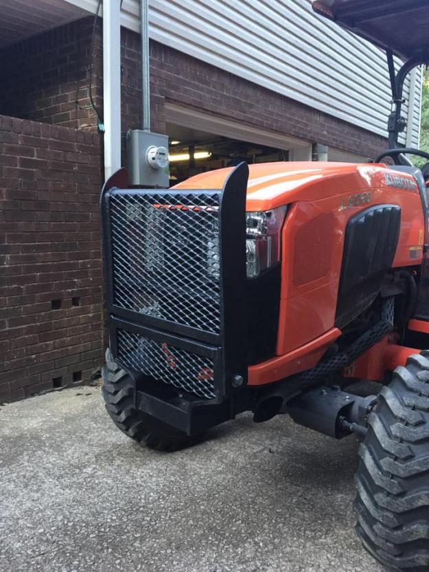 I built this brush guard for my L6060. The factory one was just for looks. I needed something that would protect my grill and radiator. I had it sprayed with bed liner material rather than painted for durability......
