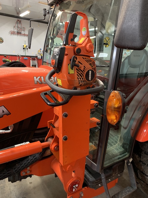 But with an implement on for ballast I think that would make access more difficult..... If you reverse how you have it mounted on the ROPS the power head of the saw would not be sticking out, just a bit of the bar.
