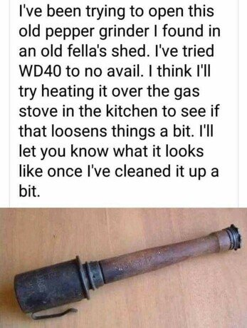 That particular pepper grinder works in a unique way. To get the pepper out you have to first unscrew the bottom (small end) cap and expose a little handle. Pull that handle and wait for a few seconds. You should get a real bang out of that pepper.