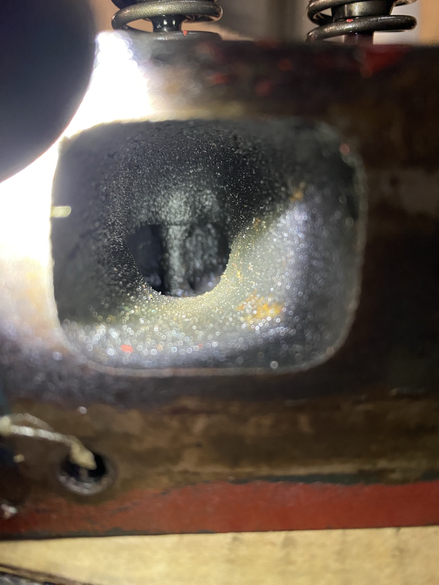 I've removed the head and nothing strikingly bad but the inlet ports and valves are really sooted up and oily and I did notice some exhaust puffing out the inlet when I was turning it over and thinking it odd.