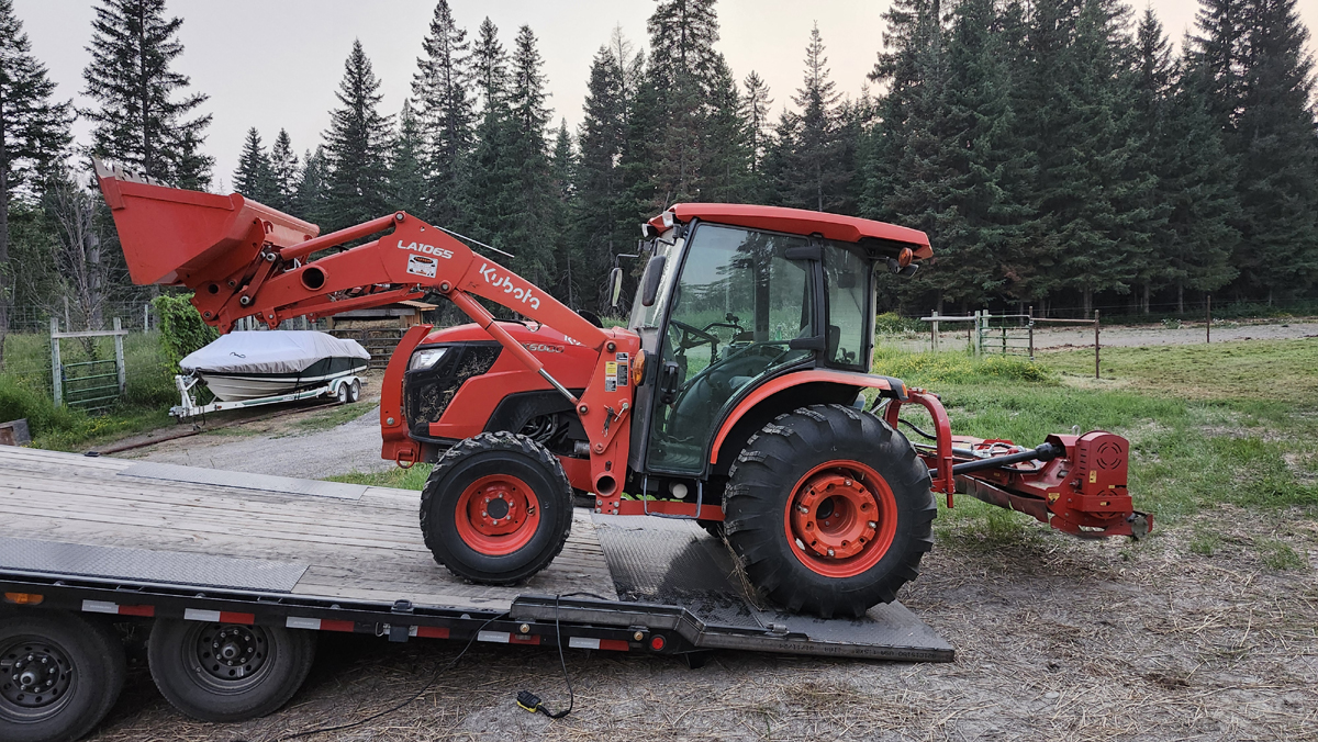 I have to haul the MX and flail to a job this afternoon/evening so had to wrap up a few things. I got the pallet forks cut down so that the rear of the deck sits flat on the ground. I also managed to get all four bolts through the stake pockets and trailer frame and nuts installed.