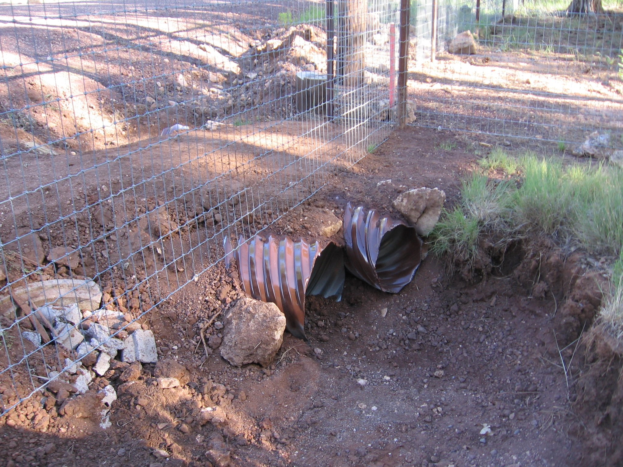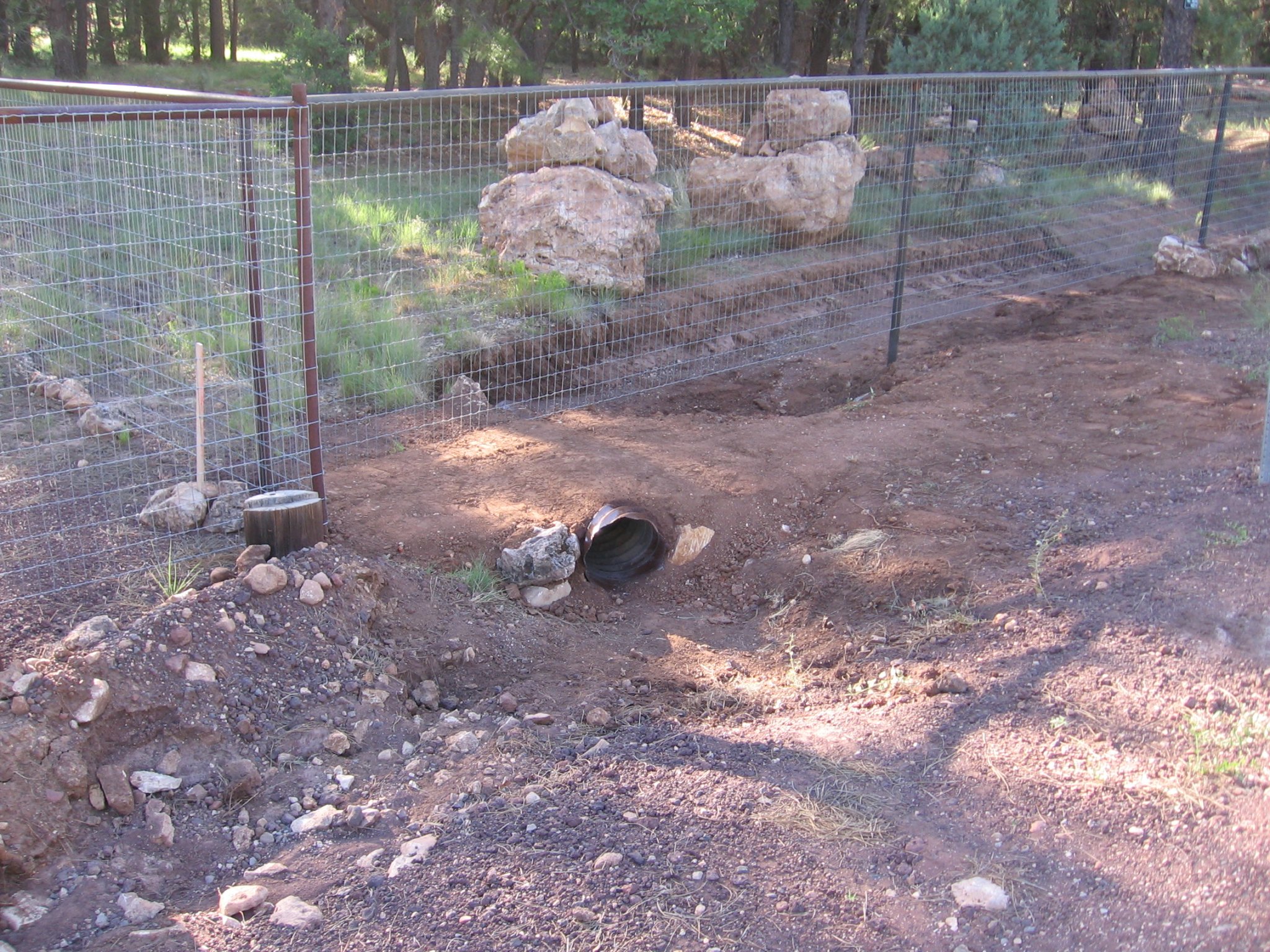 Did some more rock work, and added a 12" culvert to bring water from the county ditch under the fence.