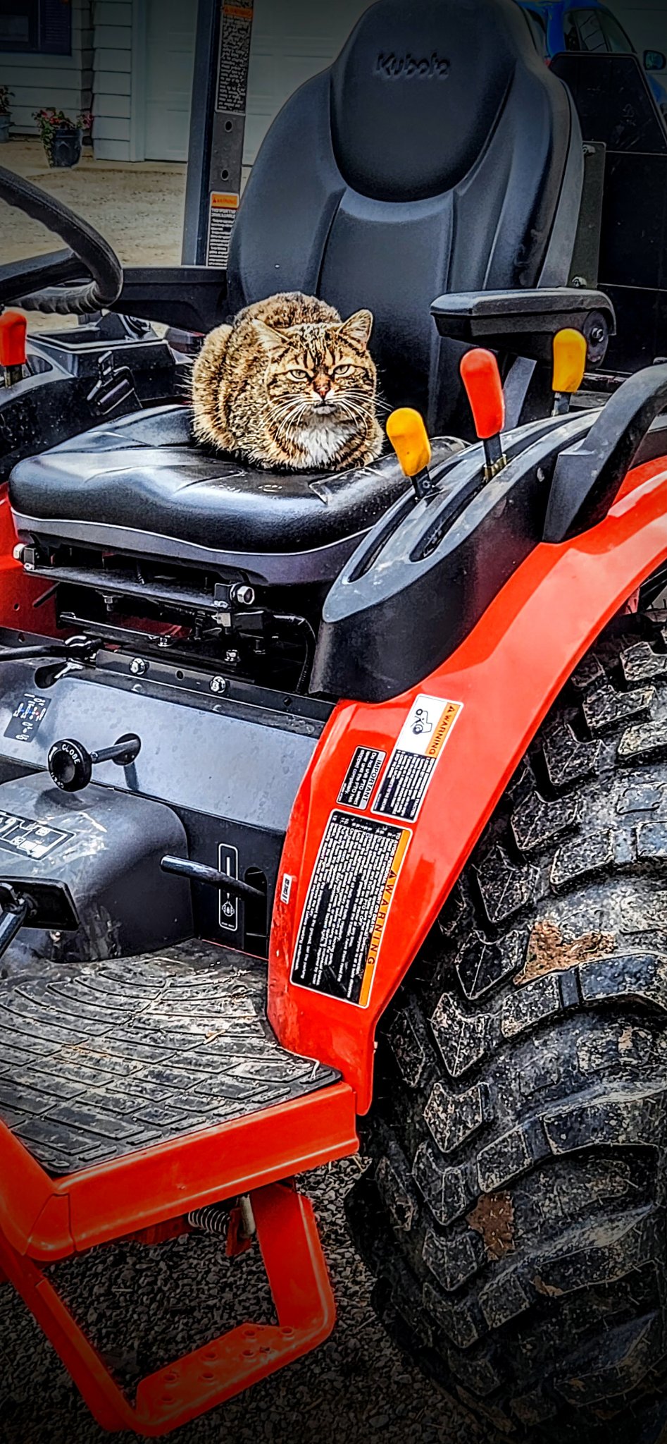 I got off the seat for a minute and Cheyenne the shop cat wanted to take over.