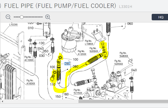 L3301 HST tractor, Only 250 hours. A rat chewed through a fuel line between the Fuel Filter and the Supply Pump. It is the fuel line right after the fuel filter and right before the supply pump. I have not had a chance to go to the Kubota Dealer in Watsonville CA yet. I would prefer to buy parts on line and then install it by asking some handy friends.
