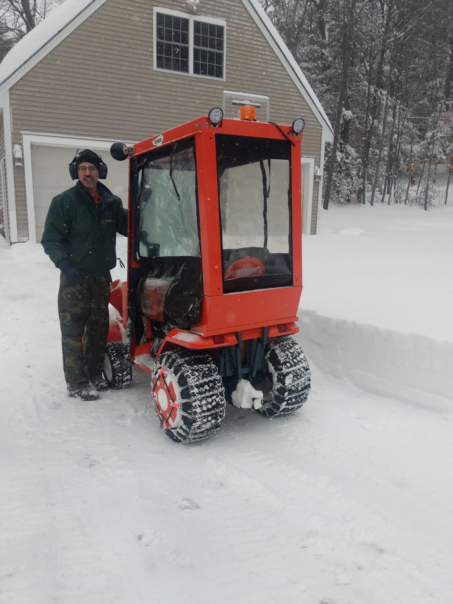 on the bottom of the shoes. I purchased some old international wheel weights, sanded and painted those orange they weigh 38.5 lbs each. I also picked up a set of tire chains as well for snow.
