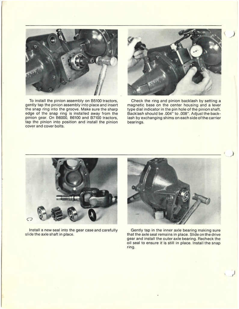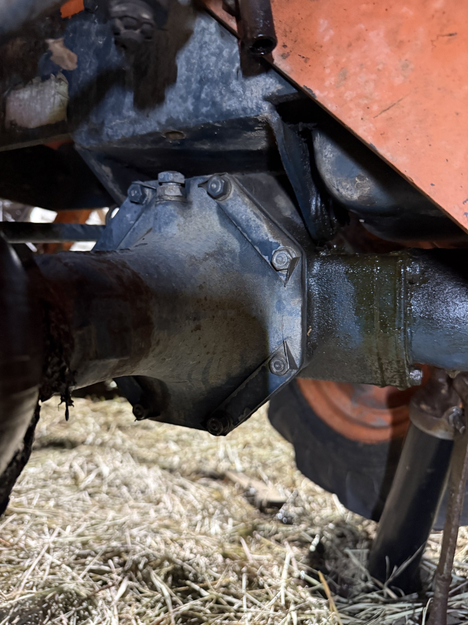 I have an early B7100-D with ball and socket type steer knuckles. The front axle is the only thing i havent been through and I decided to grease it after i got done using the tractor last night. It started purging old grease out of the knuckle so i decided to keep going until it came out clean grease. Then i saw a drip from the front differential area. At first i thought it had cracked the case but after looking closer it is pushing oil from the center pin somewhere. I hope that I didnt do any permanent damage. Did i screw up? Pictures are attached. It was cold and dark so hopefully they allow everyone to see whats is happening.