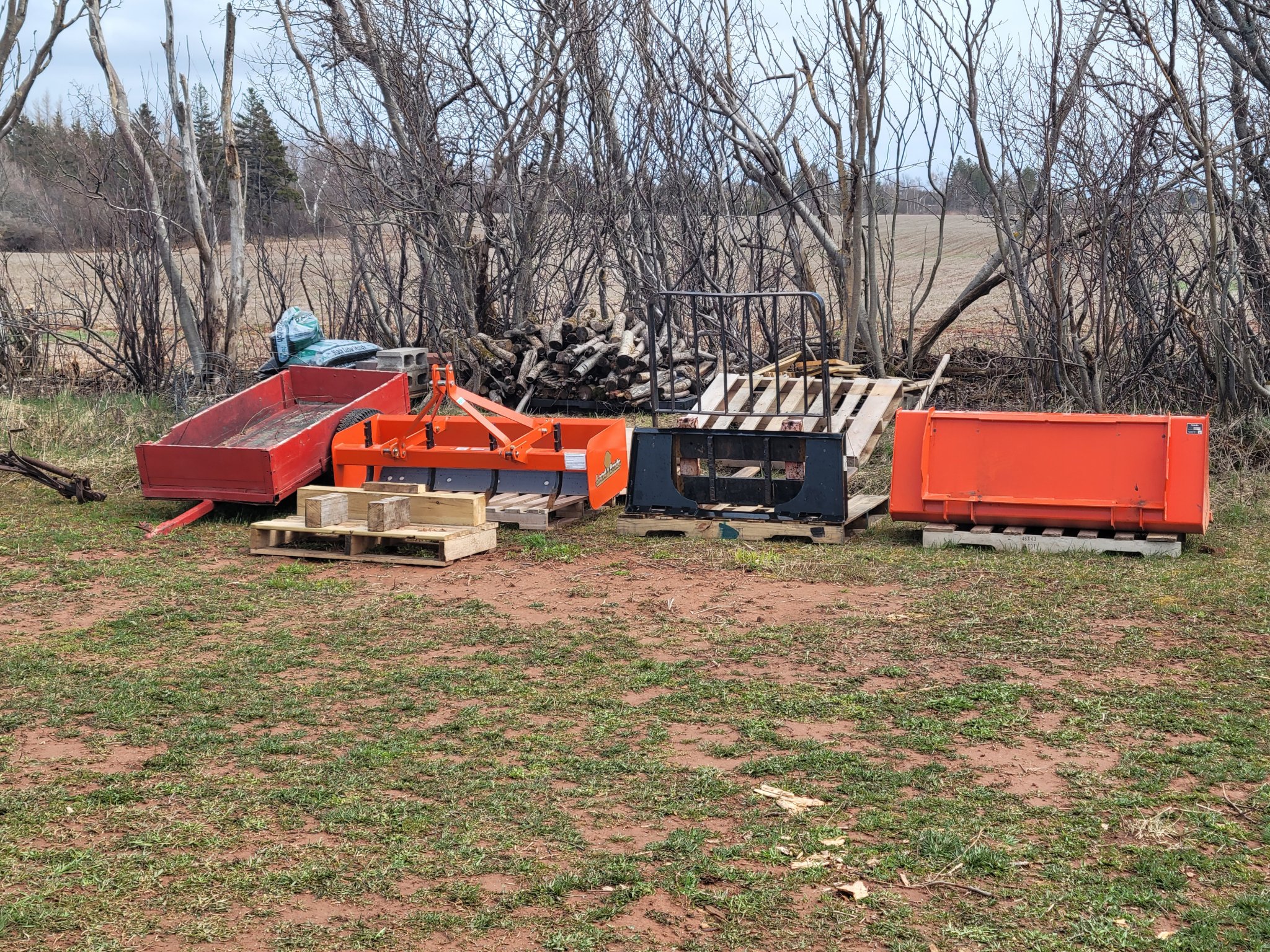 yup same situation here tooNot complaining, just making an observation. I have a lot of implements now and storage is a real challenge. In a perfect world I wouldn't have to move one or two implements in order to gain access to another. A large, flat, covered area is on my wish list. I think a lean-to along one or both sides of a barn would be a good way to keep implements out of the weather and accessible so hopefully some members here will post photos showing how they solve the issue of implement storage and accessibility.