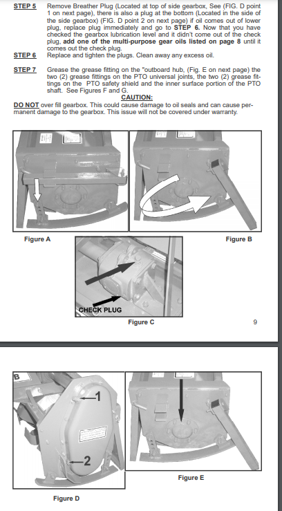 I'm not sure which area you are talking about. I had to put gear oil in both gear boxes on mine. I have a King Kutter, but it is branded Rural King. I assume they would basically be the same. You have a weep plug on each gear box that you remove and then fill until it weeps out. I found with the middle gear box, I can just look down into the fill hole and the gear oil should just cover the gears, making it unnecessary to remove the weep plug.