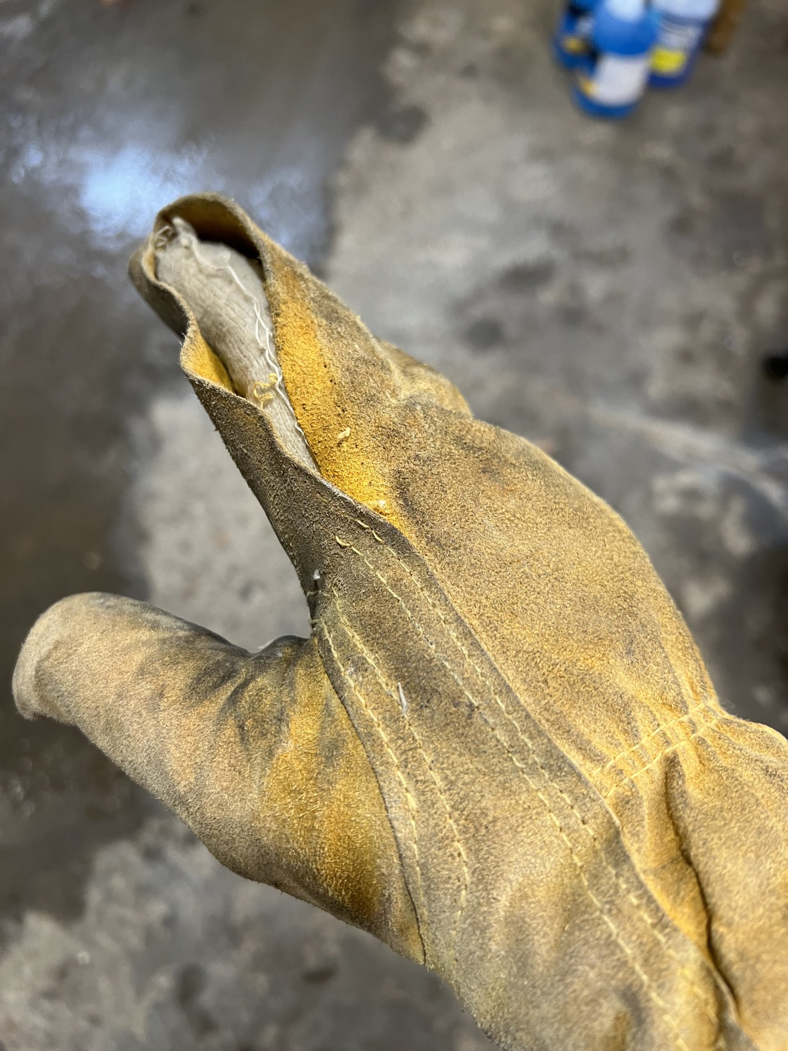 I'm currently test driving some Wells Lamont gloves that Costco had 3 pair for $19 IIRC. So far they're OK but I avoid wearing them when working around welding projects. With man-made materials on the back it is a concern that something real hot contacting the backs would melt through. Generally I wear MIG gloves or the old brownish heavy leather gloves for actual welding BUT for handling hot or sharp parts it's most often no-name unlined leather let over from before I retired. There's often a need for just a little bit of tacking / welding that doesn't justify changing gloves. You know - close your eyes and tack it quick:)