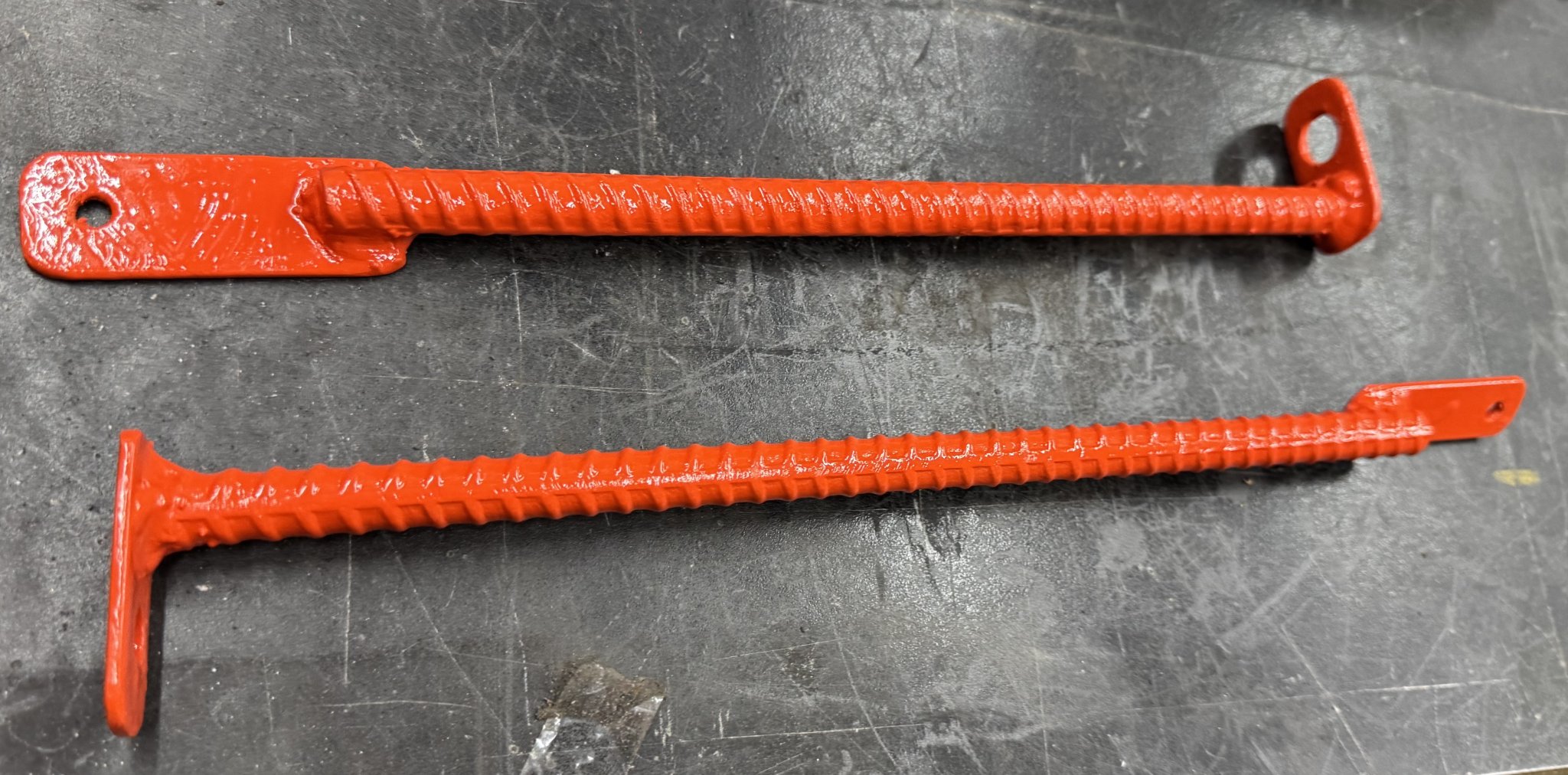 5/8" rebar and some 1/8" x 1" plate. Super simple and effective. Super solid now.