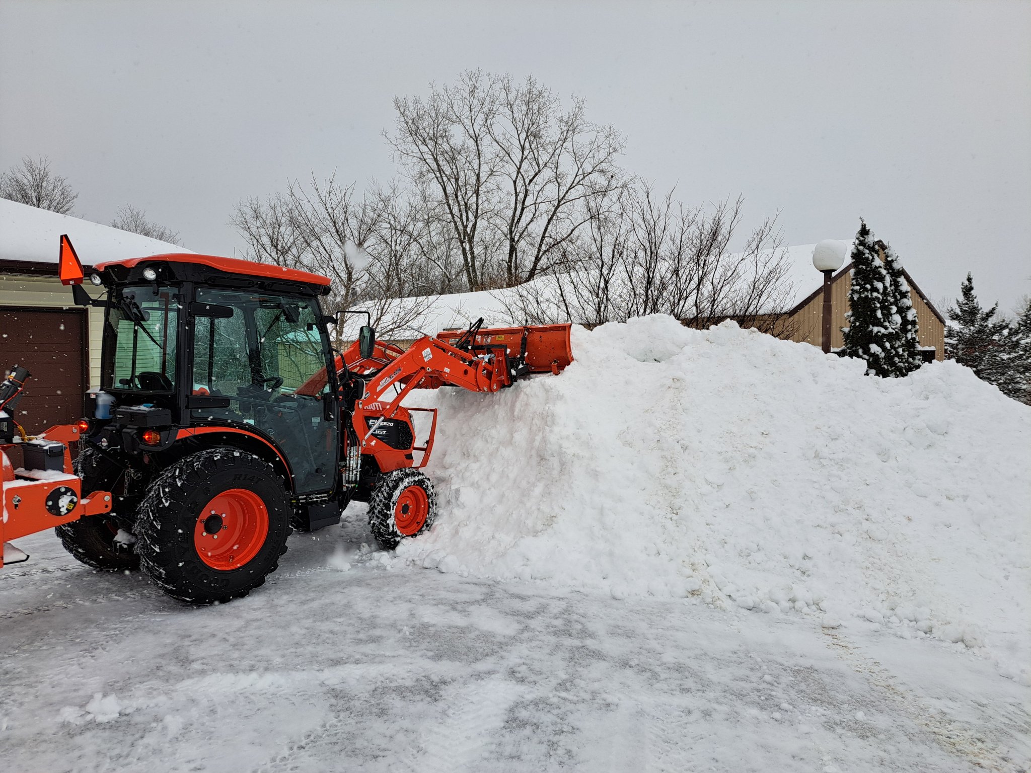 Totally agree! Did my first major snow removal on my 4000 foot driveway last Monday since I got the tractor and blower in 2022. Have hills and ditches as well. Ice under 10” plus drifted in areas. Just amazed at the performance of the r14 tires.I have r14s and my driveway has a solid layer of ice from last weeks rain. I am amazed how they grip the ice, even on my hill they feel safe in 4wd. A couple pics from yesterday where you can see the ice. Getting ready to plow the 8 inches we got last night. I am very happy with r14s.