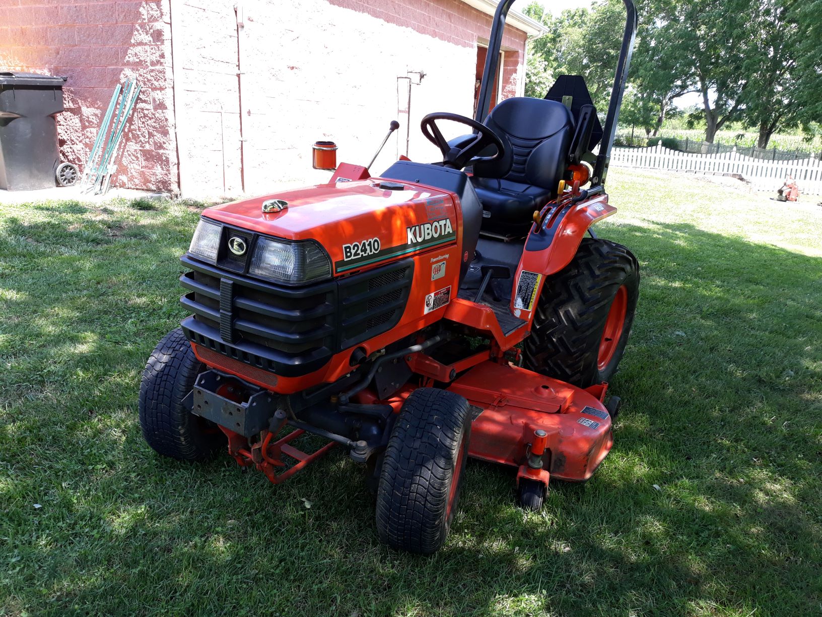 Kubota 2410, RC60-24B, FL1000- kubota hydrolic front snow blade- plug aerator