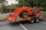 Since you mentioned not actually having the tractor yet, thought a few pics of a L4701 on a 16’ trailer might be helpful. By the time you load the rear tires or add wheel weights, loader, implement, etc. you’re on point with tractor weight. I’ve never trailered it without the loader, but I think it’s pretty obvious it would fit with loader and rear implement removed. It’s REALLY tight with loader and just a box scrape. Chipper and grapple, it’s really too short. I don’t trailer much, it pulls great, and have $750 in getting mine roadworthy so no complaints. It has two 7K each axles so weight isn’t an issue.